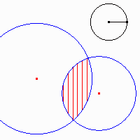 Étant donné deux disques D1 et D2 de centres C1 et C2, cette macro hachure, sous forme d'arcs de cercle centré en C1, le domaine